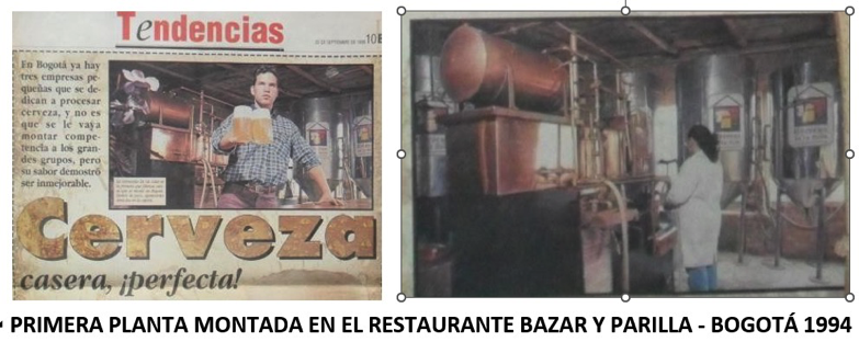 La primera microcerveceria fue montada en1994 en el Restaurante Bazar y Parrilla, barrio Cedritos en Bogotá y fue cerrada en 20 por demolición del restaurante, y construcción de un edificio de apartamentos siendo de destacar las montadas en Quito y en Maracaibo.